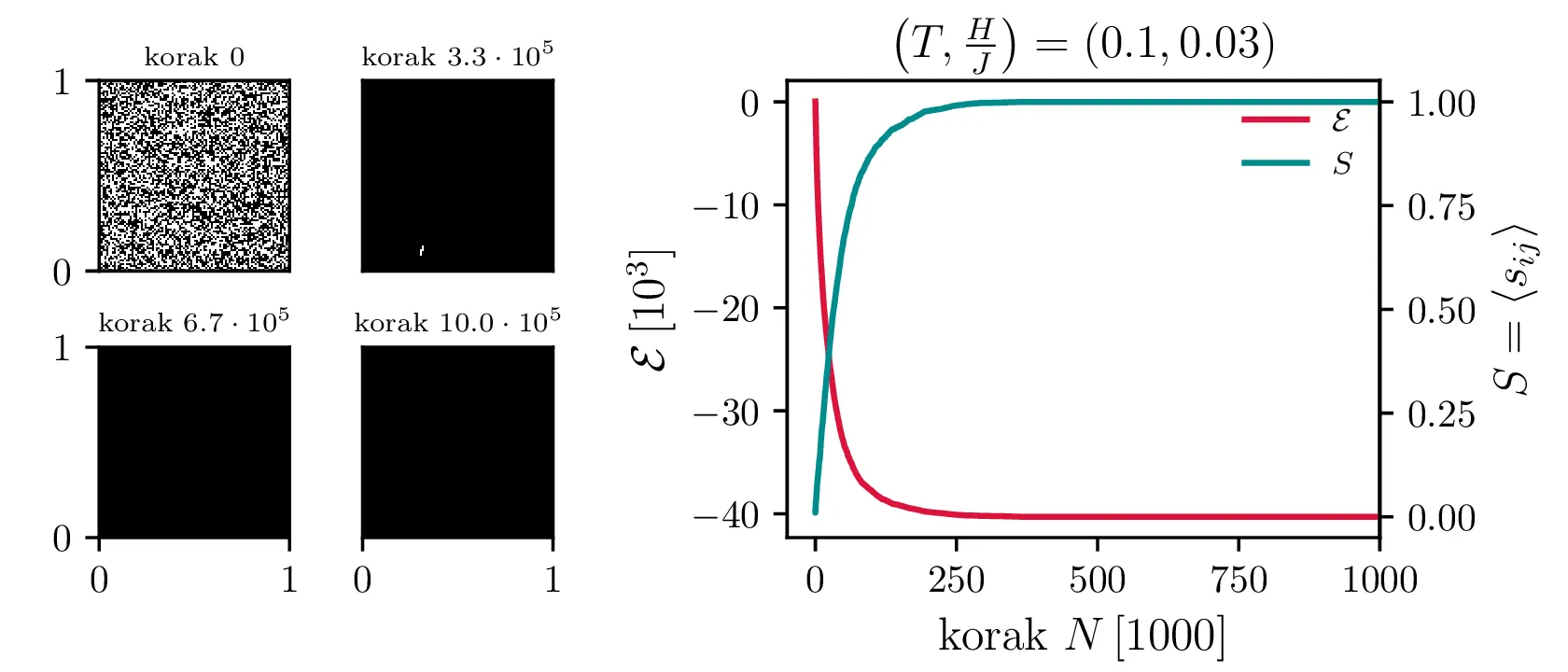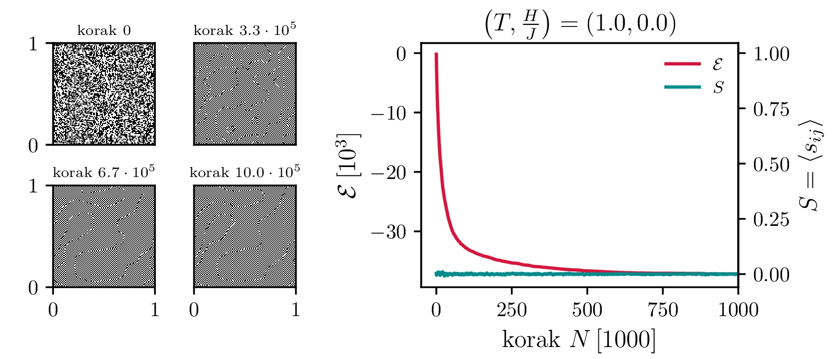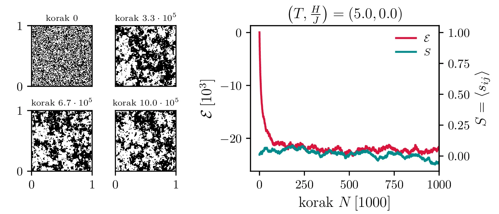 Na posameznem koraku predlagamo potezo \(S_{ij} \mapsto -S_{ij}\) za naključno mesto \((i,j)\).